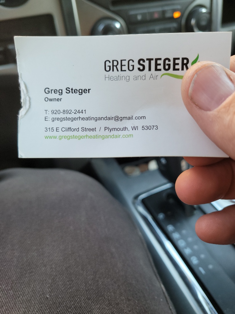 In the Plymouth area, Greg Steger Heating and Air is well known for providing exceptional furnace repair, installation, and service. The people we send out to serve you are also top notch, something you'll see in their reviews below. Everyone you deal with at our company has the goal of making sure your experience with us will be so good you'll call us every time you need help. You can feel confident working with Greg Steger Heating and Air because we stand behind our work and comply with all local codes. This is why, as you can see by the map and reviews below, we are rated so highly for AC, Furnace, and Boiler Repair in Plymouth, WI (69). Call us today at (920) 892-2441!