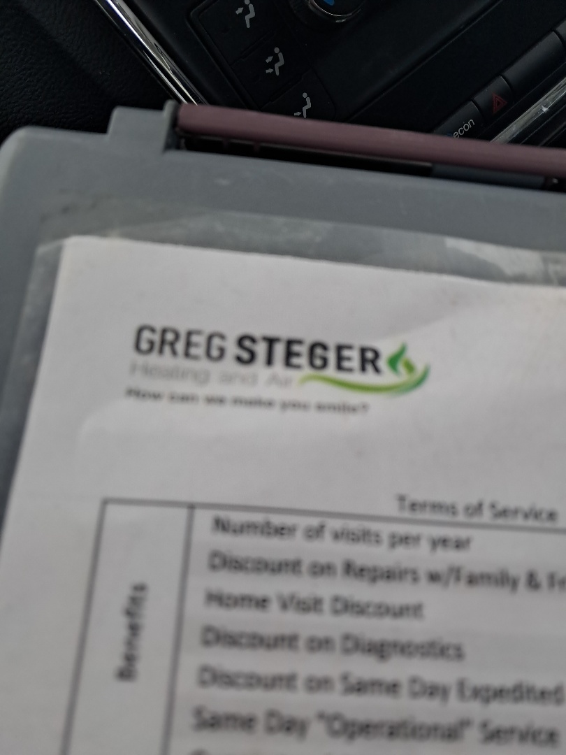 Friendly, caring, prompt, helpful, knowledgeable, quality, generous, and so much more. The best holistically quality service! Thank you Greg Steger Heating and Air!